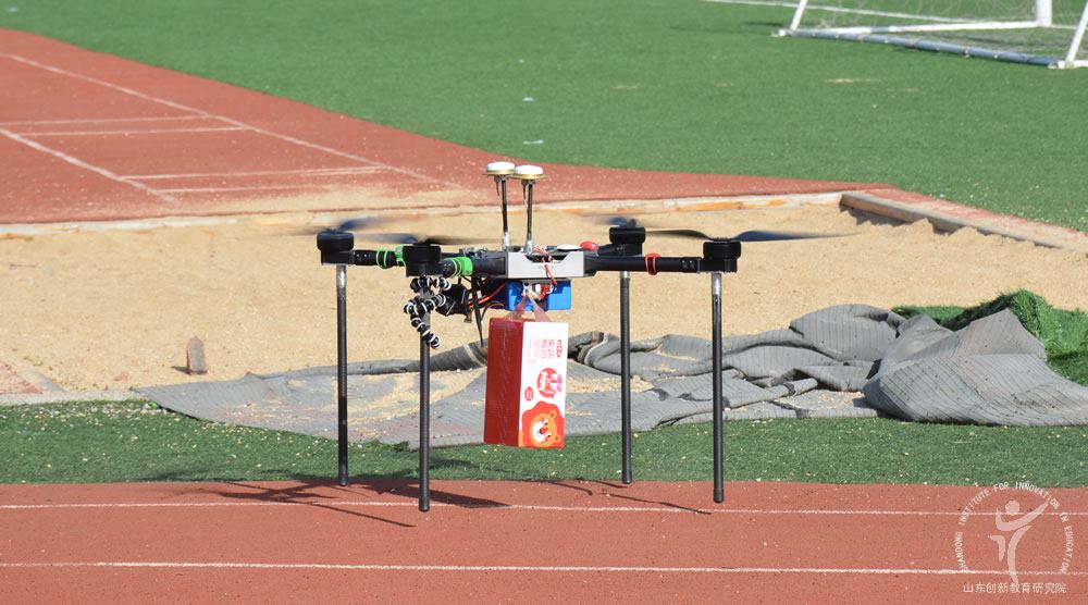潍坊(上海)新纪元学校的无人机社团展示无人机运输技术。