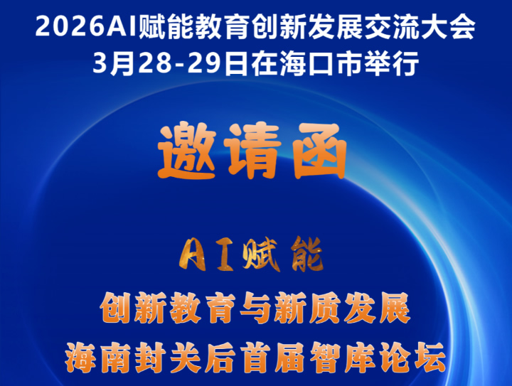 为全面贯彻党的二十届四中全会和全国教育大会精神,认真落实《教育强国建设规划纲要(2024-2035年)》,深入推动人工智能与教育深度融合,探索教育高质量发展新路径,值此海南自贸港封关运作的首个春天,恰逢国家“十五五”规划的开局之年,特发起举办“2026AI赋能教育创新发展交流大会”。现将有关事项通知如下:大会宗旨:汇聚国际教育实践智慧、坚守创新实践育人理念、借助人工智能赋能教育,开创基础教育全新局面。