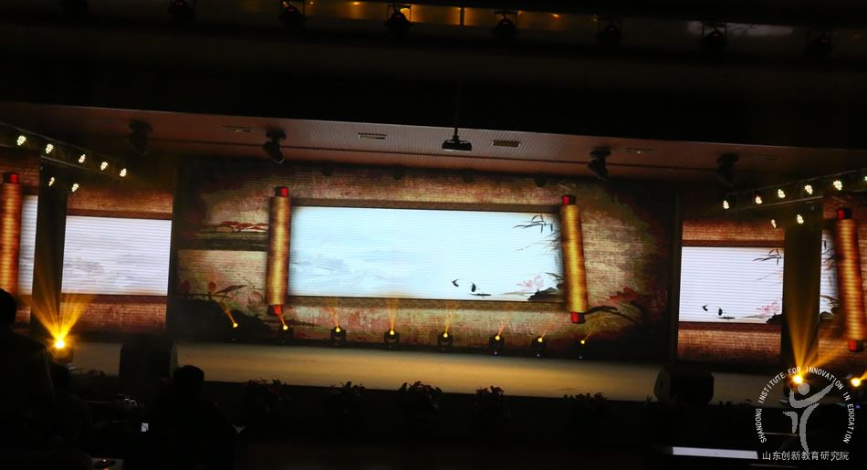 在山东创新教育研究院初中学校发展联盟启动仪式暨“家校和融”推进会上,临沂九中的学生为入会者展示诵读活动成果。