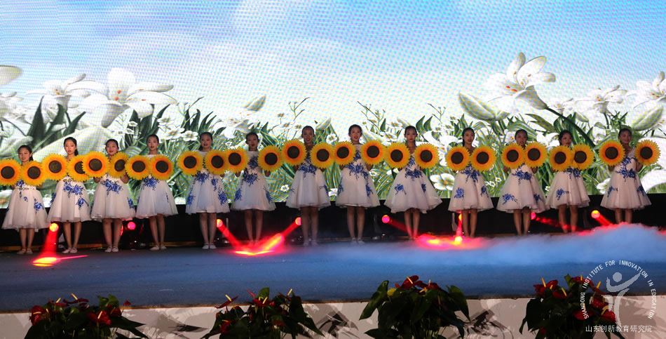 在山东创新教育研究院初中学校发展联盟启动仪式及“家校和融”推进会议上临沂九中展演节目《心愿》。
