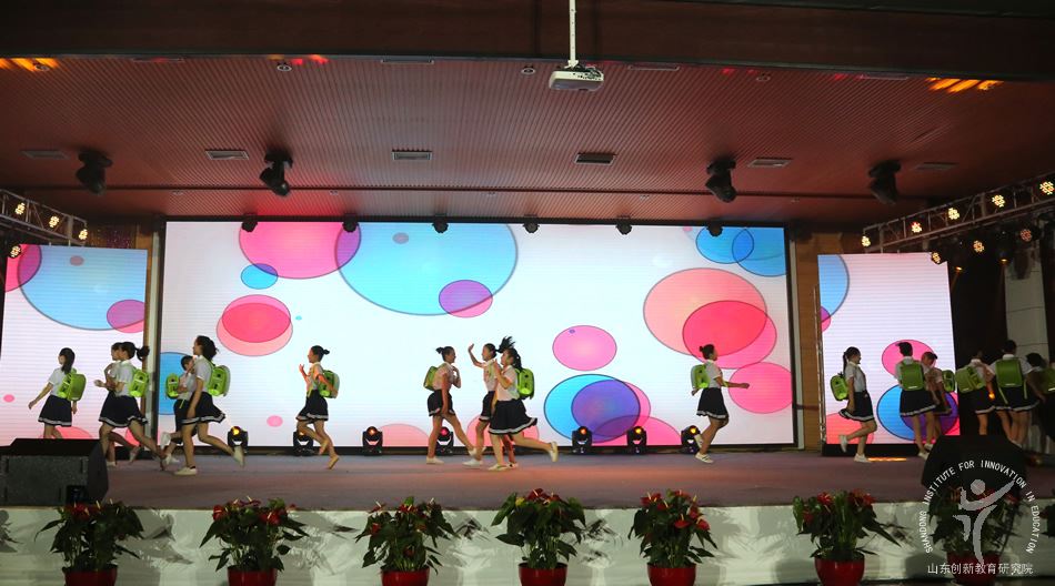 在山东创新教育研究院初中学校发展联盟暨“和融教育”推进会上临沂九中的学生展示的《大梦想家》节目。