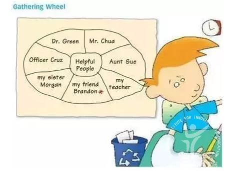 先用“材料收集轮”模板来整理思路,确立要写的人是谁,用红笔标注出来。例如下图中泰勒通过“材料收集轮”决定他要写的人是好朋友布莱登。