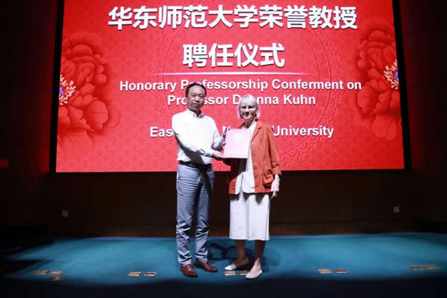 ▲ 2018年5月10日,Deanna Kuhn教授作为华东师范大学荣誉教授正式加入课程所,华东师大副校长戴立益代表学校向Deanna Kuhn教授颁发了聘书。