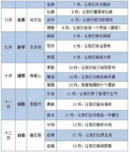从教育改革看,注重习惯养成是夯实核心素养的必然方式。学生发展核心素养指的是学生应具备的、能够适应终身发展和社会发展需要的必备品格和关键能力,综合表现为 9 大素养,具体为社会责任、国家认同、国际理解;人文底蕴、科学精神、审美情趣;身心健康、学会学习、实践创新。我们可以说,以“每月一事”为代表的习惯养成项目,是为核心素养的落实提供了行动路径。