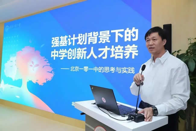 所以在“强基计划”当中特别又强调,重点在于数学物理化学生物等等这些(学科),让我想起来若干年以前有句口号:学好数理化走遍天下都不怕。我们前一段时间特别强调的是国学、人文,这很重要,但是实际上我们千万不能忽略了最基础的学科。所以北京一零一中学,作为北京市的示范高中校,这个学校应该担当起这样一个拔尖创新人才的培养奠基的工作。我们也有幸成为今年普通高中新课程、新教材实施的国家示范校。