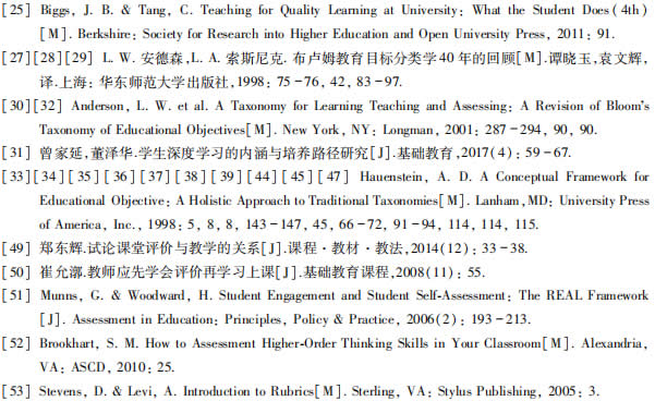 基于教育目标分类学厘清两种取向深度学习的不同层级,对于教师开展课堂评价具有重要的指导意义。为什么聚焦深度学习目标分层对于课堂评价的意义,而不是教学或其他方面,主要出于三方面考虑。一是教育目标分类学最直接的用途是指导测验编制与课堂评价,从中析出的深度学习目标层级就应优先考虑如何运用于评价。二是课堂评价对于教学具有工具与解放意义。[49]优先思考课堂评价的作为,才能更好地发挥其促使教与学转换的催化剂作用。因为有一种观点越来越被大家接受,即“教师应先学会评价再学习上课”[50]。讲清楚课堂评价的意义,“为深度学习而教”会更有方向感。三是澄清促进学习的课堂评价之对象。自20世纪90年代以来,促进学习的评价成为一种新范式得到广泛讨论与实践,关于促进什么样的学习却不甚了了,现在分清深度学习的目标层级,可以为评价所促进的具体对象找到落脚点。课堂评价作为非正式评价,伴随整个学习过程,其目的在于促进学生发生真正的学习,而不是对学习结果与质量进行简单的区分与评判。从促进深度学习的视角来看,深度学习的分层使课堂评价的目标、方法、任务与技术变得有据可循。