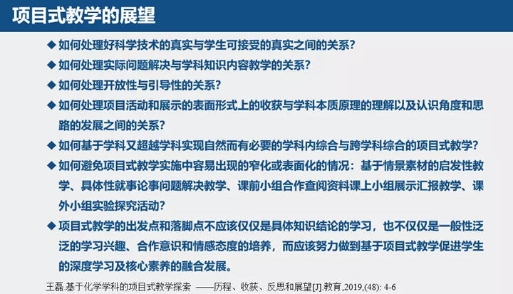 基于我们的实践,我们提出来了一些项目式教学未来值得进一步研究的展望,跟同行们分享。