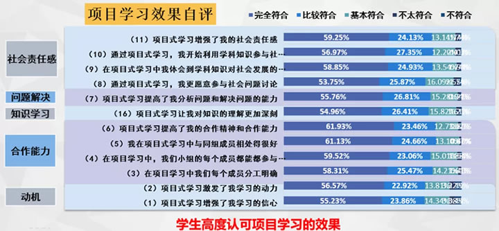 学生们的发展变化不仅反映在课堂学习表现,课后访谈,及学科能力测评结果中,而且他们自己对项目式学习也是高度认可的,很少有一种教学方式有这么多维的学生收获和感受。