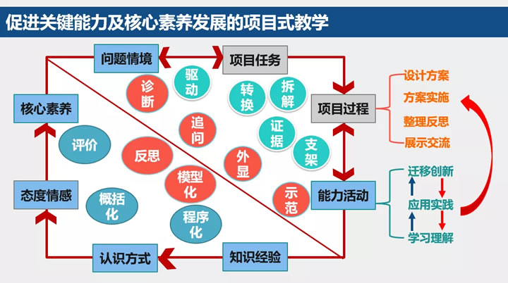 大家知道我们现在都面临着学科及课程核心素养为导向的教育改革要求,我们正面临这样一个严峻的挑战:学科及课程核心素养怎么落实到我们学科的教学当中?这是非常具有挑战性的。项目式教学是在这样一个学科育人大背景下应运而生的。