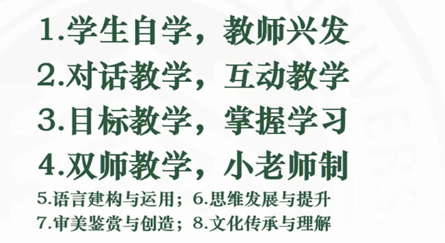 我们评课表称之为八项注意,其中四条是有关各个学科的核心素养的标准。比如说语文数学外语等等不同的学科不同的听课表。但是还有四条是稳定的,是跨学科的,所有的学科都要有这四个标准。比如说前面四条学生自学、教师要兴发,前提是兴起和引发学生自学,这堂课多大程度上做了这些事,我们到时候要通过录像的方式让你看到做到了没有。第二是提倡对话教学,互动教学。第三是教学评一致性,我们有时候也称之为学教评一致性,一堂课学生是不是掌握了,是不是实现了你教师所期待的教学任务,“老师教了,不等于学生学了”,这是崔允漷教授经常说的,学生学了不等于学会了,在这个地方要把它落实下来,学教评一致性有个标准。最后有个双师教学,不能一个老师站在那里讲话,这个老师上课,应该有别的同行的资源进入,有小老师进入,我们把这四条标准确定下来。这四条标准加上四条学科标准一起作为听课、评课的视角。