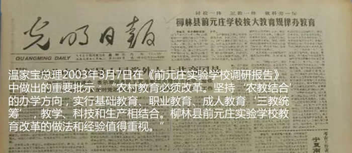 在上个世纪八十年代末,我们展开过一次大规模的改革,其核心就是主张普通教育、成人教育、职业技术教育“三教统筹”,强调教育与农业科技、农村经济发展相结合,即,农、科、教三结合。在这个过程当中,各地出现了很多农村教育改革案例,其中最著名的就是山西柳林县前元庄实验学校。里面的老师不仅管义务教育的学生,课后他们还承担着农业技术员的功能,到农户家普及新的农业制度。前元庄实验学校也开展扫盲教育,成人课程活动,当时温家宝总理也对此作了重要的批示。