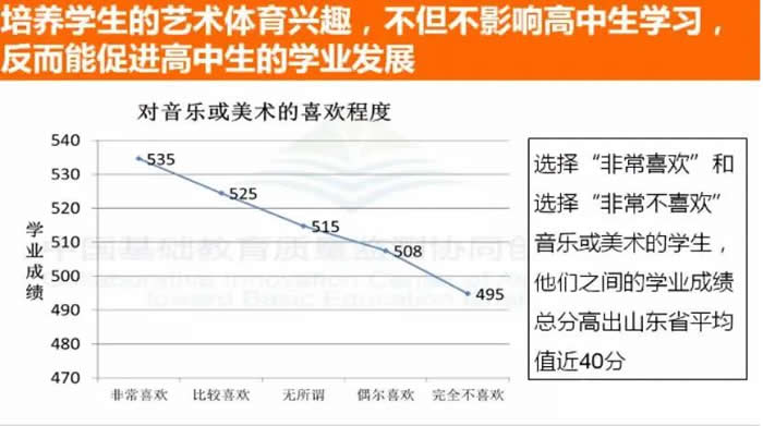 第一,坚持全面发展规律。很多教育工作者对坚持全面发展内心并不认同。有人说,就好比如一个人的十指,每一个指头都不一样长,怎么能全面发展!其实,从教育规律层面来讲,全面发展是人的社会性的全面发展,是人的德行、智慧、审美、身心、劳动诸方面社会性的全面发展。这与人的特长发展不是一个概念。我们不是让每个孩子在德智体美劳等方面都得到一样的发展。脑科学告诉我们,人的大脑结构是分区的,不同的区域具有不同的功能,而人脑的智慧水平与大脑神经网络的联结有关,人的活动方式越丰富、多样,刺激大脑神经联结的物质就越活跃。这说明,人的教育越全面,越有助于促进人的发展。北京师范大学教育质量监测中心对山东省高中教育质量的监测表明,非常喜欢美术艺术的孩子和不喜欢美术艺术的孩子相比,学业质量高出了近40分。