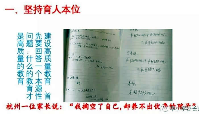 什么是高质量教育?高质量教育的内涵是什么?我们必须凝聚共识,才能找到高质量教育的出发点。前一段时间,我看到一个家长在网络上晒养娃成本,孩子从出生还没到初小学毕业,就已经花掉了100万元。家长很无奈的说:“我掏空了自己,却养不出优秀的孩子!”我们需要思考,什么样的孩子是优秀的孩子?如果我们在这个本源性问题不能凝聚共识的话,我们追求高质量教育就找不到方向,就没有出发点。92岁的人民教育家于漪老师说:“教育是育人不是育分。”教育的本质功能到底是什么?或者说,教育的初心和使命到底是什么?于漪老师的发人深省,如果我们不能走出应试升学本位的质量关,就不可能找到高质量教育体系建设的道路。