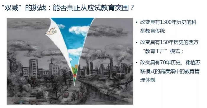 我想现在正在进行的“双减”要回应的一个真正的挑战是我们能不能从应试教育中突围,我们把课业负担都归结为应试教育,对应试教育的批判和围剿持续了很多年,但应试教育仍然愈演愈烈。