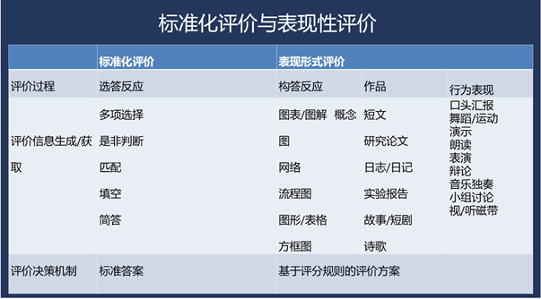 2)表现评价:表现目标、表现任务与评分规则。如路考、实验能力。