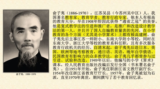 俞子夷,是中国著名的教育家、教育学者、教育行政专家,他是复式教学法的引进和推广者,推广和改造设计教学法的第一人,且开了国人自编教育量表的先河,在小学教育的各个方面(尤其是小学算术)上都有极高建树。他的一生,与中国近代史几乎完美重叠,近代教育史上重要的教育实验,他几乎都有所涉猎。