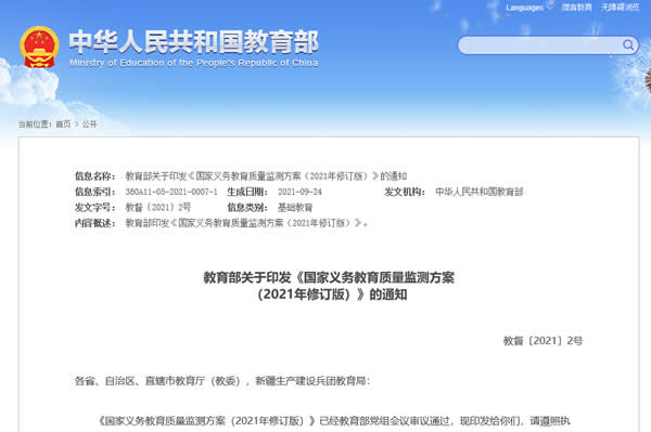 • 近日,教育部印发了《国家义务教育质量监测方案(2021年修订版)》(以下简称《方案》),启动第三周期国家义务教育质量监测工作。......