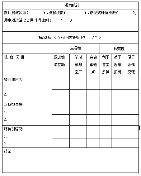 学科: 课题: 班级: 授课人: 观察人: 时间: