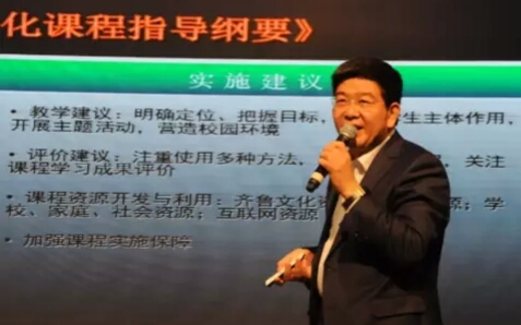 在主题报告会上,烟台莱州市教体局局长尹文涛做《实施“立德树人十项工程”,培养学生核心素养》的主题报告,报告指出,立德树人十项工程是教育方针的新要求、基础教育的新常态、改革创新的新举措、核心素养的新愿景为提出背景发展起来的。