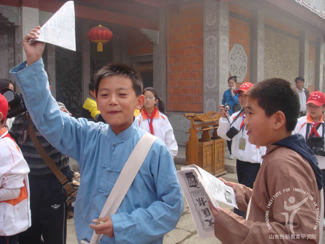 台儿庄区实验小学古城小报童叫卖《文汇报》
