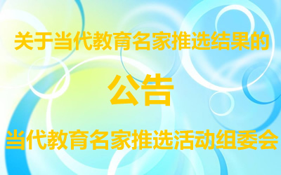 • 为深入学习贯彻党的十九大精神,以习近平新时代中国特色社会主义思想为指导,全面加强师德师风建设,培养高素质教师队伍,倡导全社会尊师重教,中国教育学会、中国高等教育学会、中国职业技术教育学会、中国教育电视台、中国教育报刊社、人民教育出版社等,联合成立当代教育名家推选活动组委会,按照公平公正的原则,经过广泛发动推荐、严格审核遴选、开展专家初评、.........