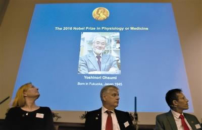 • 10月3日,瑞典卡罗琳医学院宣布将2016年诺贝尔生理学或医学奖授予日本科学家大隅良典,以表彰他在细胞自噬机理研究中取得的成就。发布会结束后,中国一家媒体的记者采访了诺贝尔生理学或医学奖委员会主席朱琳·吉拉斯。这位记者问朱琳·吉拉斯,大隅良典的“细胞自噬机理”有何应用前景?吉拉斯面对这个有点“外行”的问题解释说“尽管在未来有各种的可能性,.........