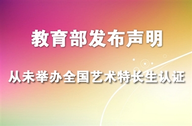 • 针对个别机构假冒教育部名义开展艺术特长生认证的情况,教育部网站16日发布声明称,教育部从未举办全国艺术特长生认证。近日,有机构以国家教育部全国艺术特长生认证中心名义举办全国艺术特长生认证。对此,教育部办公厅声明指出,教育部从未成立全国艺术特长生认证中心,从未认可过任何艺术特长生认证机构,也不鼓励学生参与社会机构等相关组织开展的艺术特长生测.........