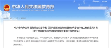• 国务院日前印发《关于全面加强和改进新时代学校体育工作的意见》和《关于全面加强和改进新时代学校美育工作的意见》。10月16日,在教育部新闻发布会上,教育部体育卫生与艺术教育司司长王登峰指出,将艺术类科目纳入中考改革试点,纳入高中阶段学校考试招生录取计分科目,依据课程标准确定考试内容。教育部回应:不增加学生课业负担和家长经济负担  .........