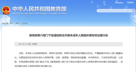 • 当前,未成年人沉迷网络游戏、网络不良信息、网络不良社交等问题较为突出,严重影响未成年人身心健康成长。为营造良好安全的未成年人网络环境,日前,教育部、国家新闻出版署、中央网信办、工业和信息化部、公安部、市场监管总局等六部门联合下发《教育部等六部门关于联合开展未成年人网络环境专项治理行动的通知》,启动开展未成年人网络环境专项治理行动。通知要求.........