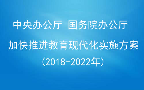 • 近日,中共中央办公厅、国务院办公厅印发了《加快推进教育现代化实施方案(2018-2022年)》(以下简称《实施方案》),并发出通知,要求各地区各部门结合实际认真贯彻落实。《实施方案》指出,今后5年加快推进教育现代化的指导思想是:以习近平新时代中国特色社会主义思想为指导,全面贯彻党的十九大和十九届二中、三中全会精神,以培养社会主义建设者和接.........