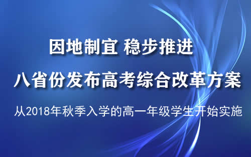 • 新一轮考试招生制度改革,向着既定目标又迈出了坚实的一步。4月23日,作为全国第三批启动高考综合改革试点的8省份,河北、辽宁、江苏、福建、湖北、湖南、广东、重庆发布本省实施方案,明确从2018年秋季入学的高中一年级学生开始实施。此前,8省份已就相关工作进行了部署,正在有序推进。这意味着,高考综合改革进入了由东部改革试点转向中西部推广的新阶段.........