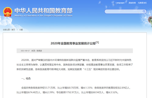 • 2020年,面对严峻复杂的国内外环境特别是新冠肺炎疫情严重冲击,教育系统坚持以习近平新时代中国特色社会主义思想为指导,认真贯彻落实党中央、国务院各项决策部署,积极推进教育事业改革发展,各项工作取得了新的突破性进展,各级各类教育均取得较大成就,如期实现教育“十三五”规划确定的各项主要目标。......
